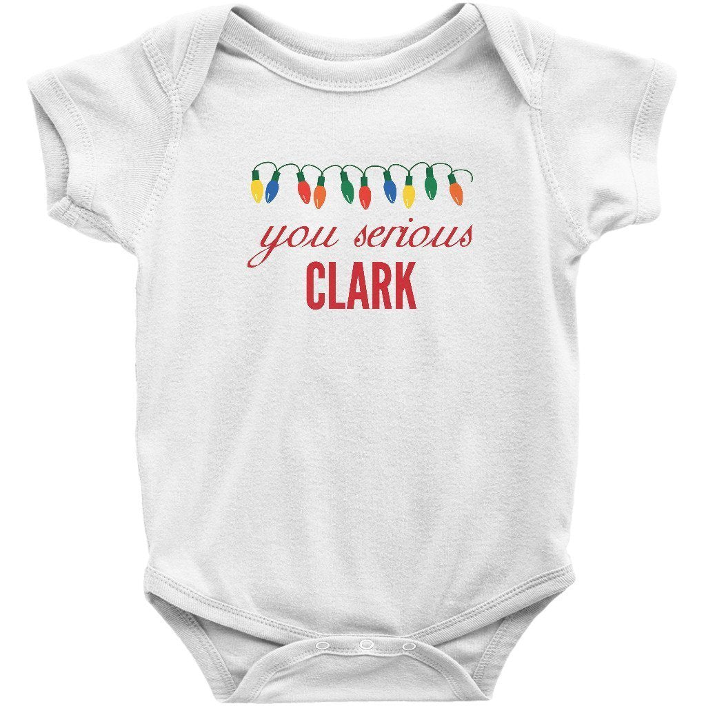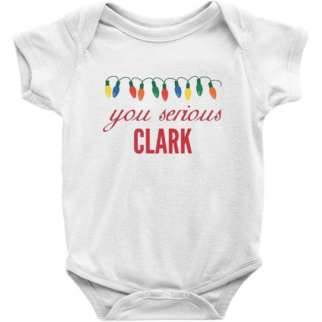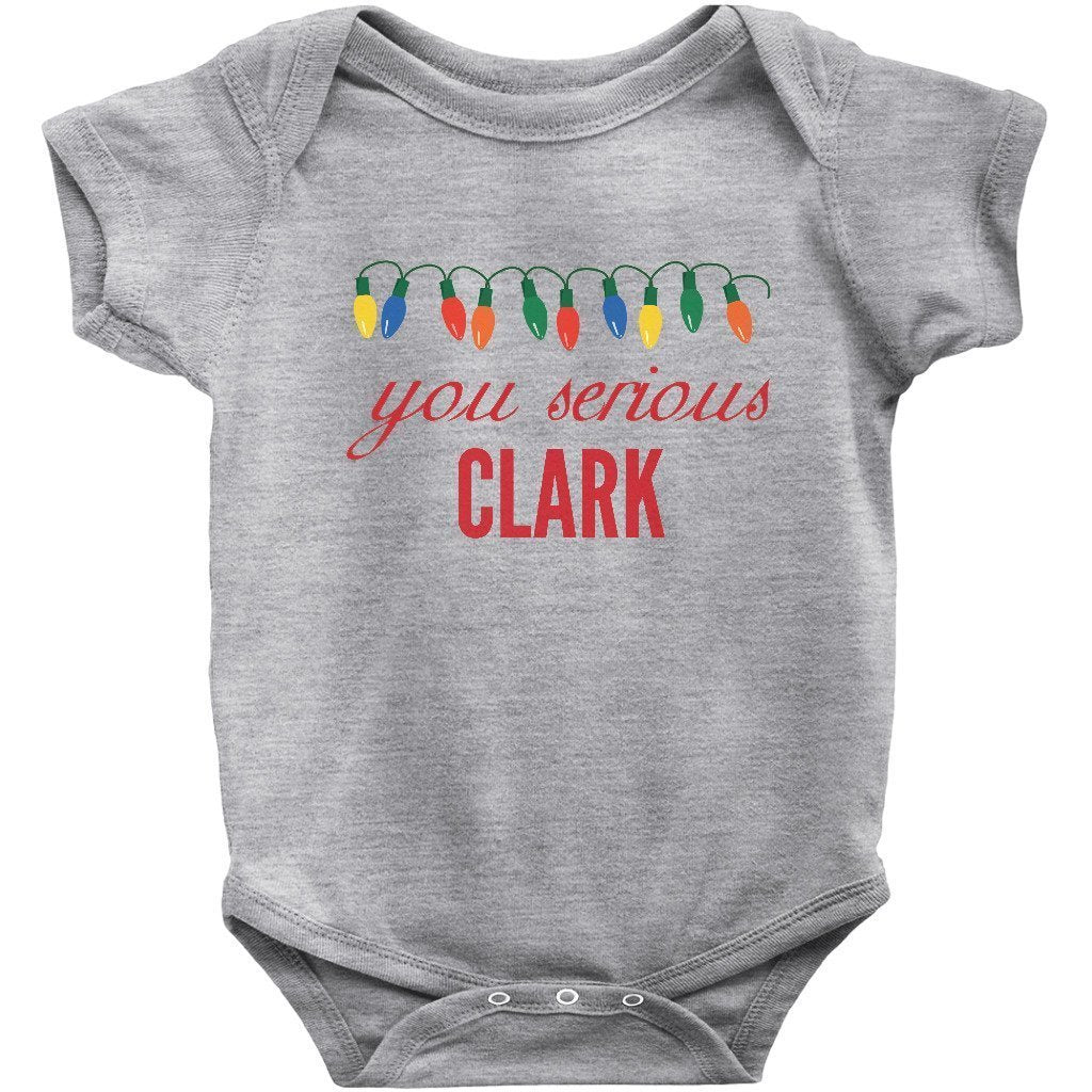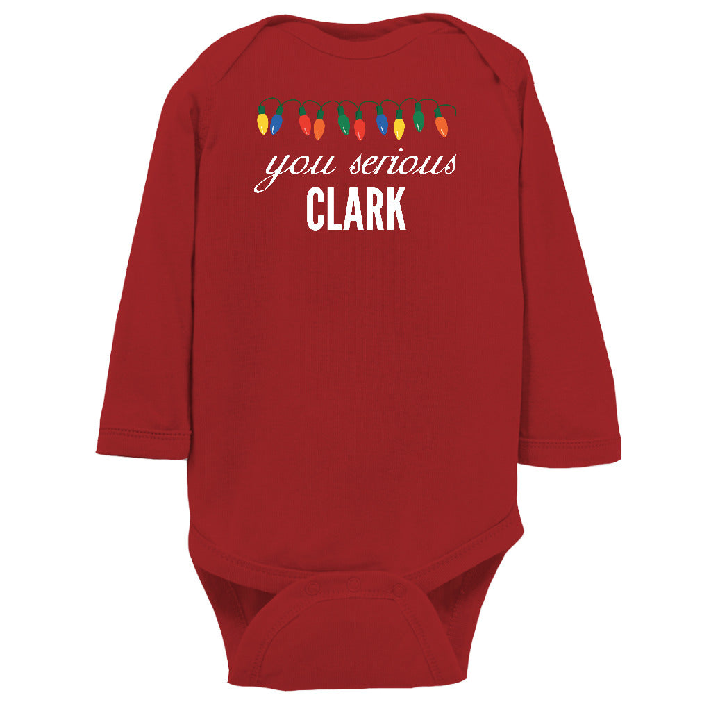 - You Serious Clark Christmas Baby Bodysuit/Onesie or Toddler T-shirt is the perfect funny Christmas outfit for the holiday season. Short or Long sleeve bodysuit / onesie or tee for both infants or toddlers is a great cute and festive xmas clothing to brighten the spirits this December.