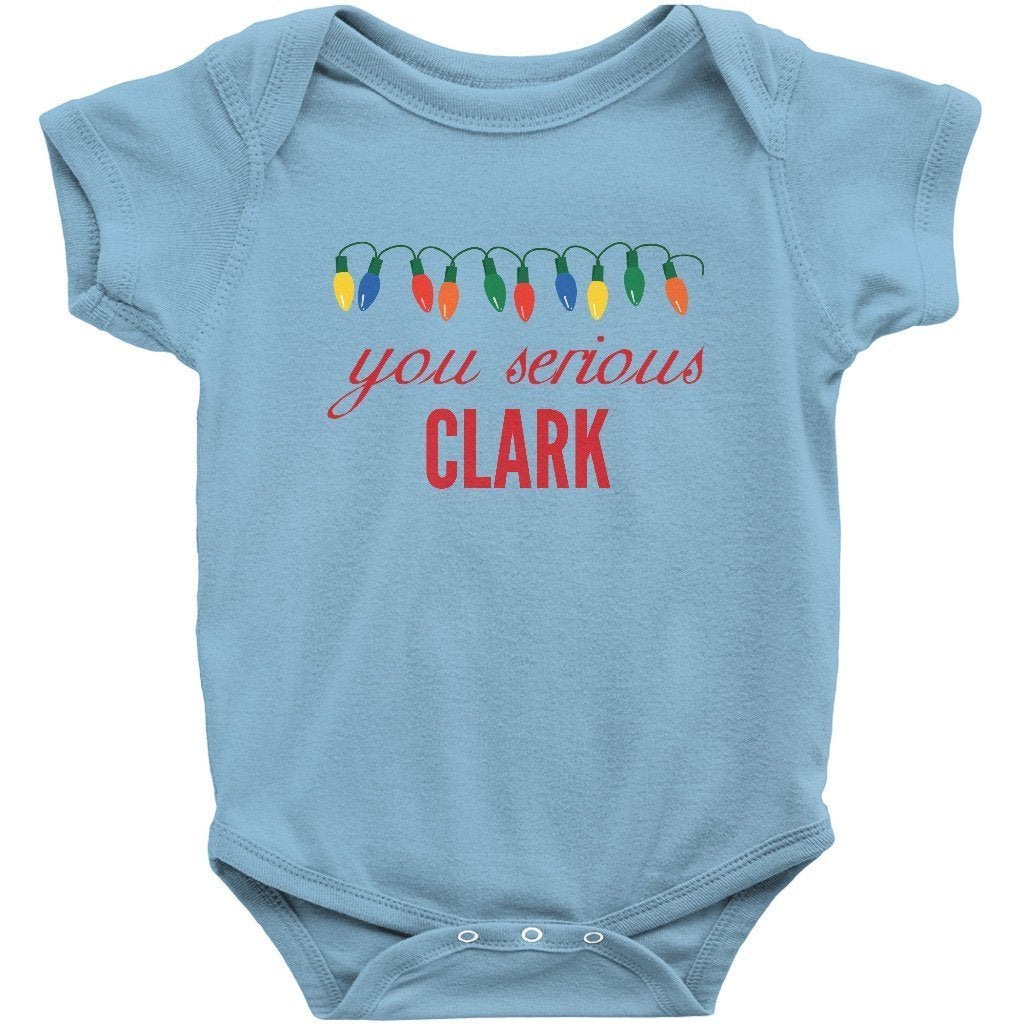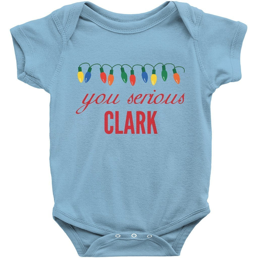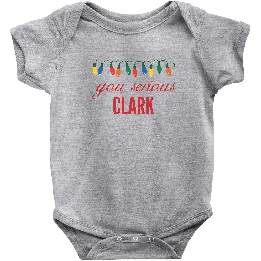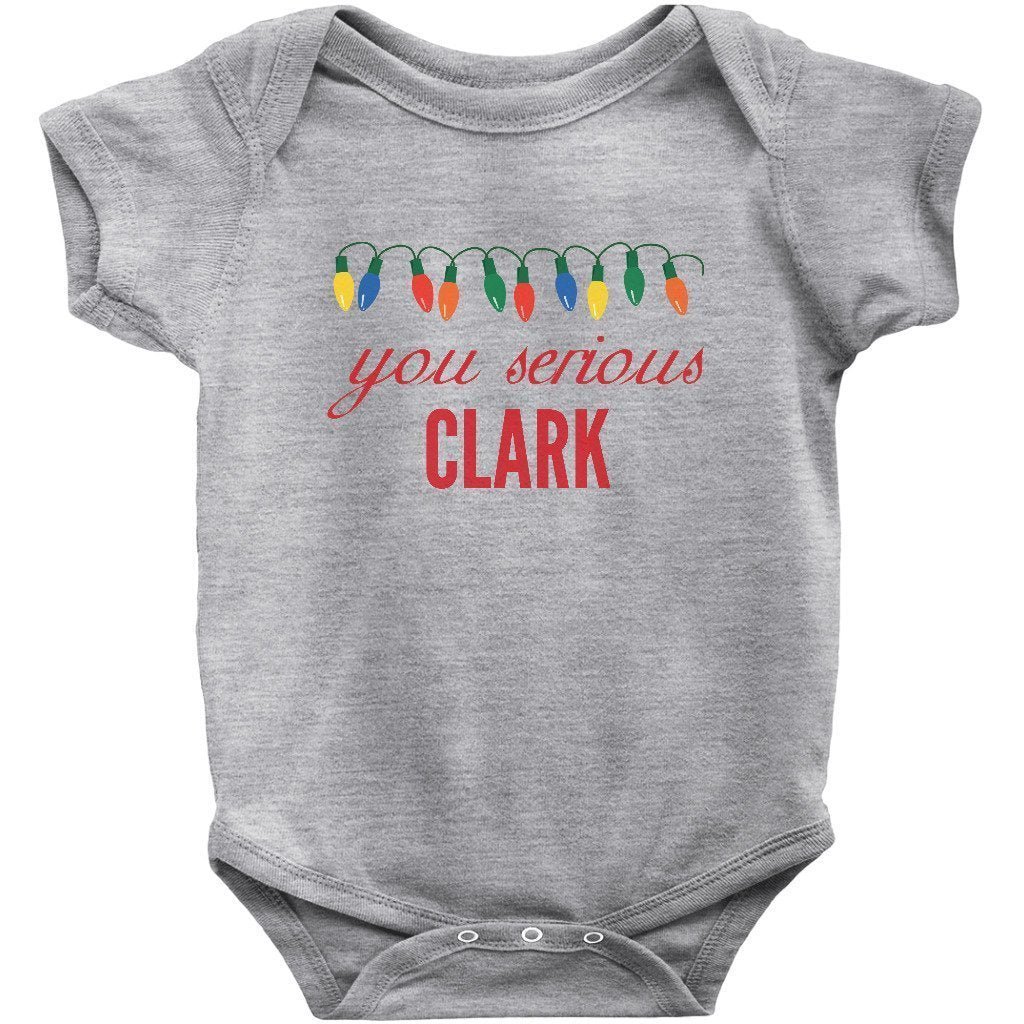 - You Serious Clark Christmas Baby Bodysuit/Onesie or Toddler T-shirt is the perfect funny Christmas outfit for the holiday season. Short or Long sleeve bodysuit / onesie or tee for both infants or toddlers is a great cute and festive xmas clothing to brighten the spirits this December.